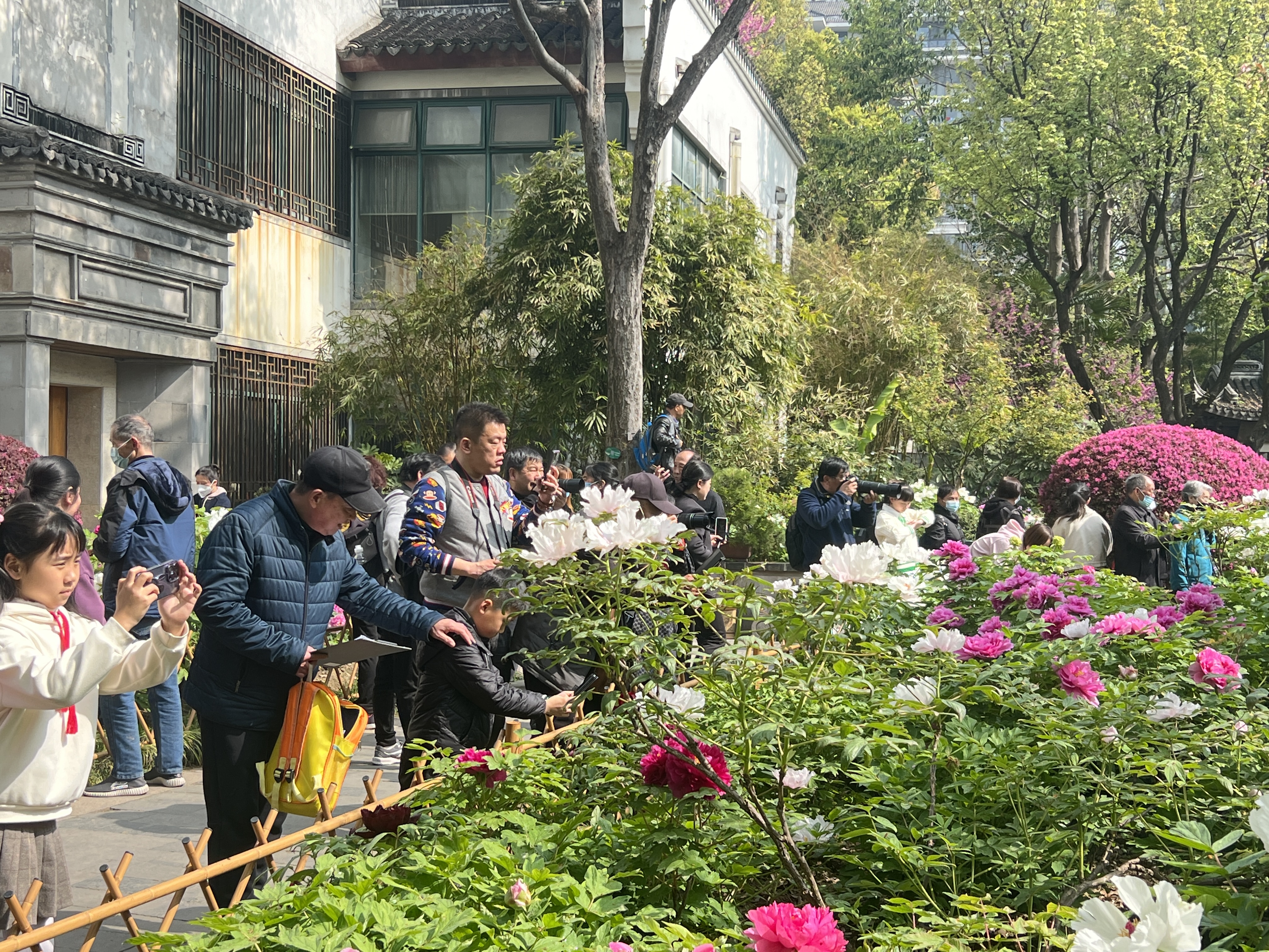 此外,还专门布置了“锦绣前程”“四水归堂”“节节高升”“为祥为瑞”“谈笑鸿儒”“花动龙城”“花好月圆”“步步生花”8组花展景点,将牡丹文化与东坡文化有机融合,既保留古典园林的韵味,又营造出人美花娇的氛围,让人眼前一亮。